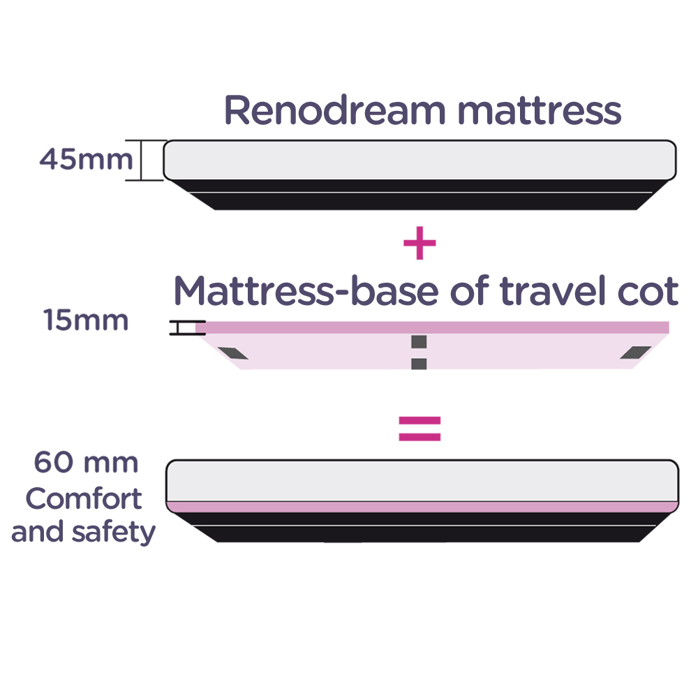 RENODREAM is the only additional mattress approved for travel cots, offering top-level comfort and safety! An exclusive worldwide innovation developed by Renolux.